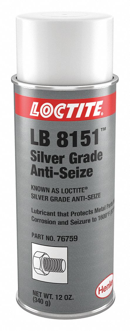 Anti seize lubricant spray. A premium quality copper anti-seize and thread lubricant that may be used to prevent seizing corrosion and galling where high temperature conditions exist. Copper based formulas are limited to 1800 degrees F and aluminum based formulas to 1600 degrees F and should serve well in most applications. Use during assembly to prevent galling corrosion and seizing due to weathering or chemicals.