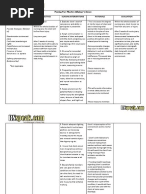 6 linhas Nursing Care Plan 1. Nursing Care Plan for Alzheimers Disease Alzheimers disease AD is the most common form of dementia among older people.