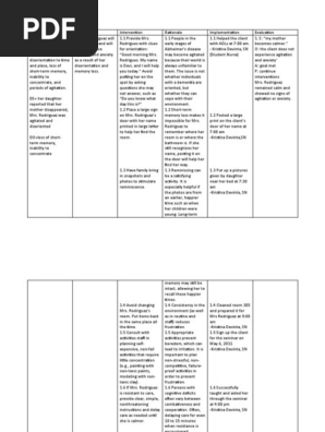 Nursing Care Plan for Alzheimers Disease - 4 Nursing Diagnosis 0. Disturbed Thought Process related to cognitive impairment secondary to dementia as evidenced by problems with coordination and motor functions difficulty handling complex tasks confusion and disorientation inability to do. Alzheimers disease care management plan. Here are 13 nursing care plans NCP and nursing diagnosis for patients with Alzheimers Disease and Dementia. Maximizing patient care Nurse practitioners have the potential to significantly impact the care of patients with dementia. OBJECTIVES Short term goal. RISK FOR INJURY Possible Etiologies.