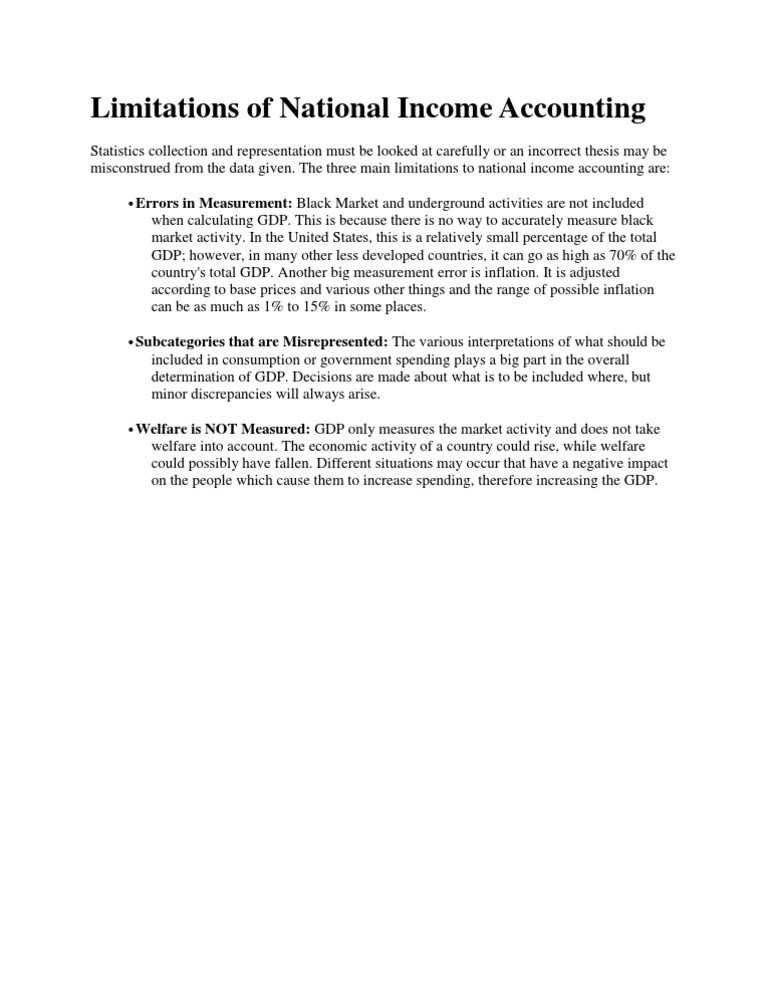 Limitations Of The National Income Accounting System Include